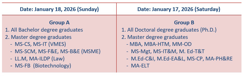 Important Note: Attendance at rehearsal is compulsory. Graduates who do not attend the required rehearsal will not be allowed to participate in the Commencement Exercise on January 24, 2026.